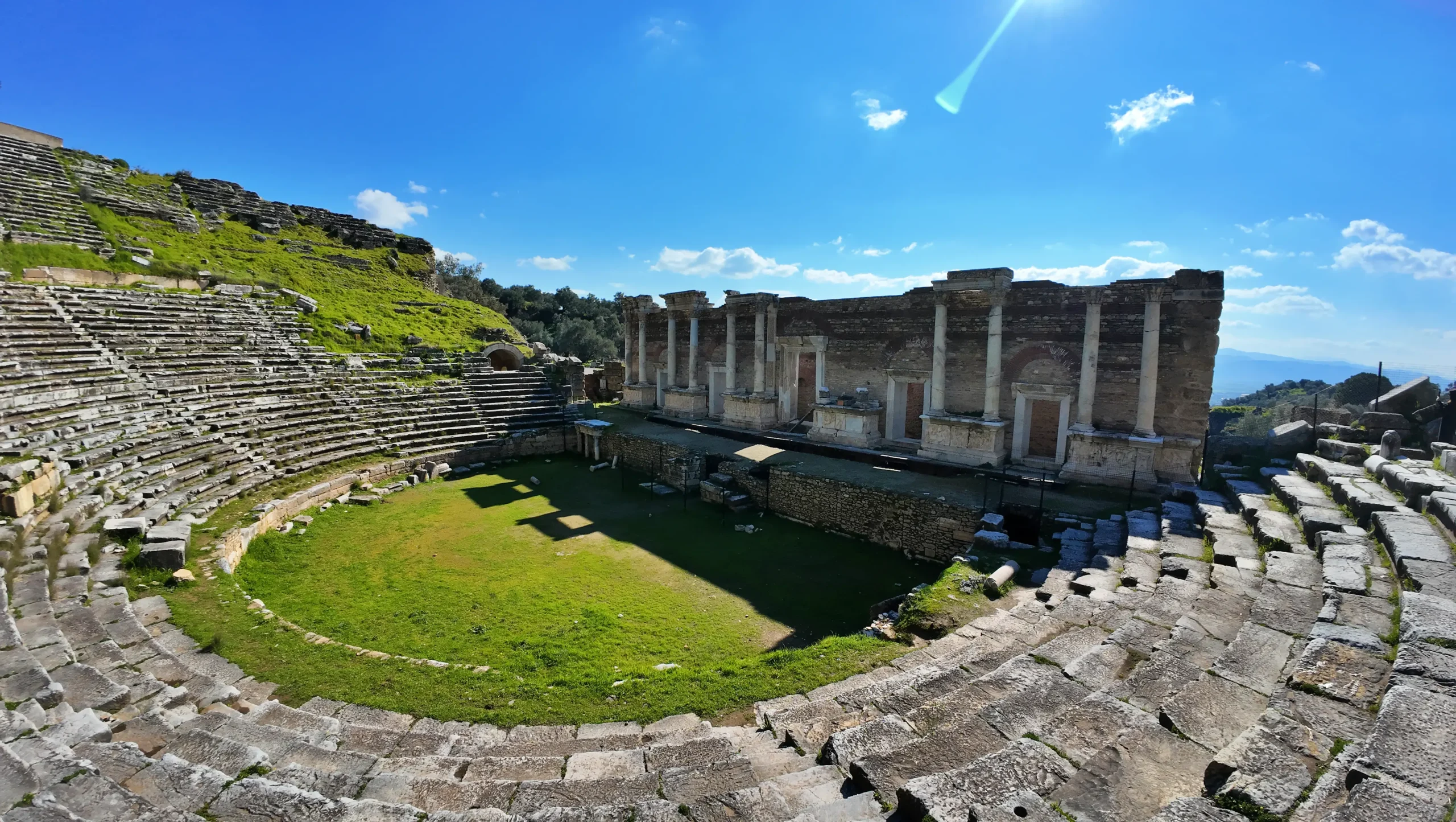 You can see this story carved in stone. The friezes on the theatre podium depict scenes from the life of Dionysus. The theatre itself is a masterpiece, with a capacity of 12,000 people, offering panoramic views of the olive groves and the Meander Valley below. It is the perfect spot for a “Golden Hour” photo—minus the crowds.